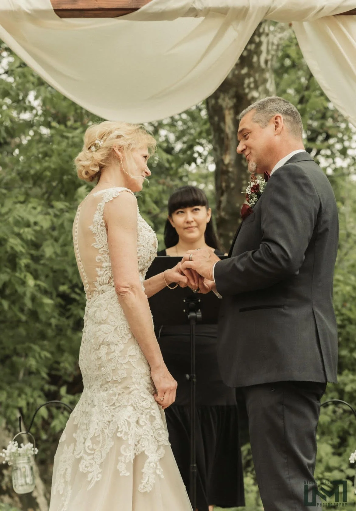 My, now, husband and I chose Lauren to be our officiant for our wedding based on her openness and positivity we read through her business pages. Great choice by us because she was so kind, sweet and professional in person. Lauren listened to every request we had and even added her own sweet caring personality to the ceremony. She helped us with ideas, personal additions and explained everything because we obviously had never done this before. Lauren also took care of our paperwork after the wedding as well, which was a tremendous help! We highly recommend Lauren if you just want another beautiful soul included in your wedding! - Jessica B. 7/21/23